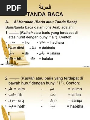 Tanda Baca Huruf Hijaiyah Baris Atas Bawah Depan - Mengenal Tanda Baca Pdf Document